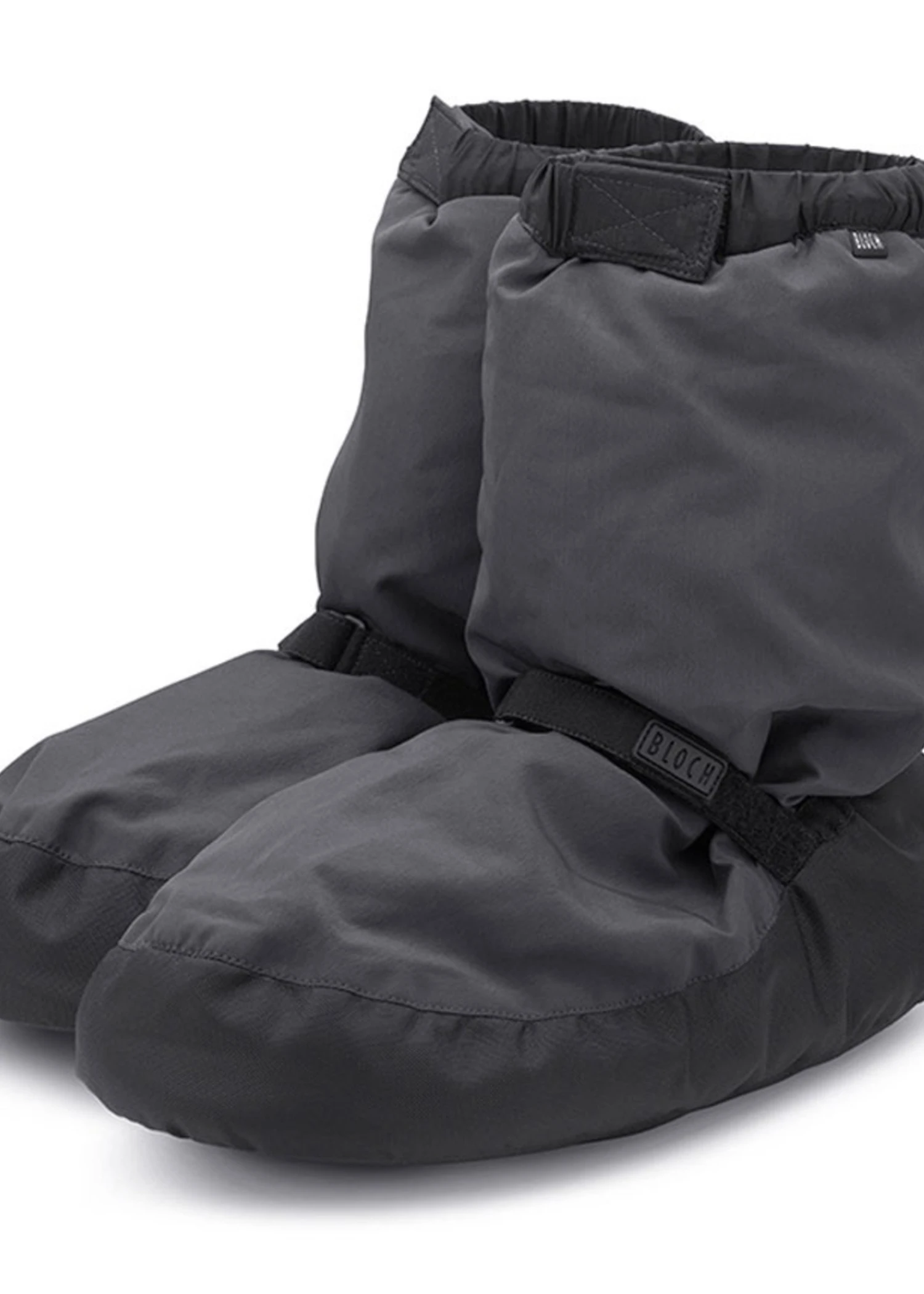 100% Polyester filling offer exceptional warmth and extreme comfort. Cushioned heel, 100% Nylon Shell, Bloch rubber logo badge on the strap.