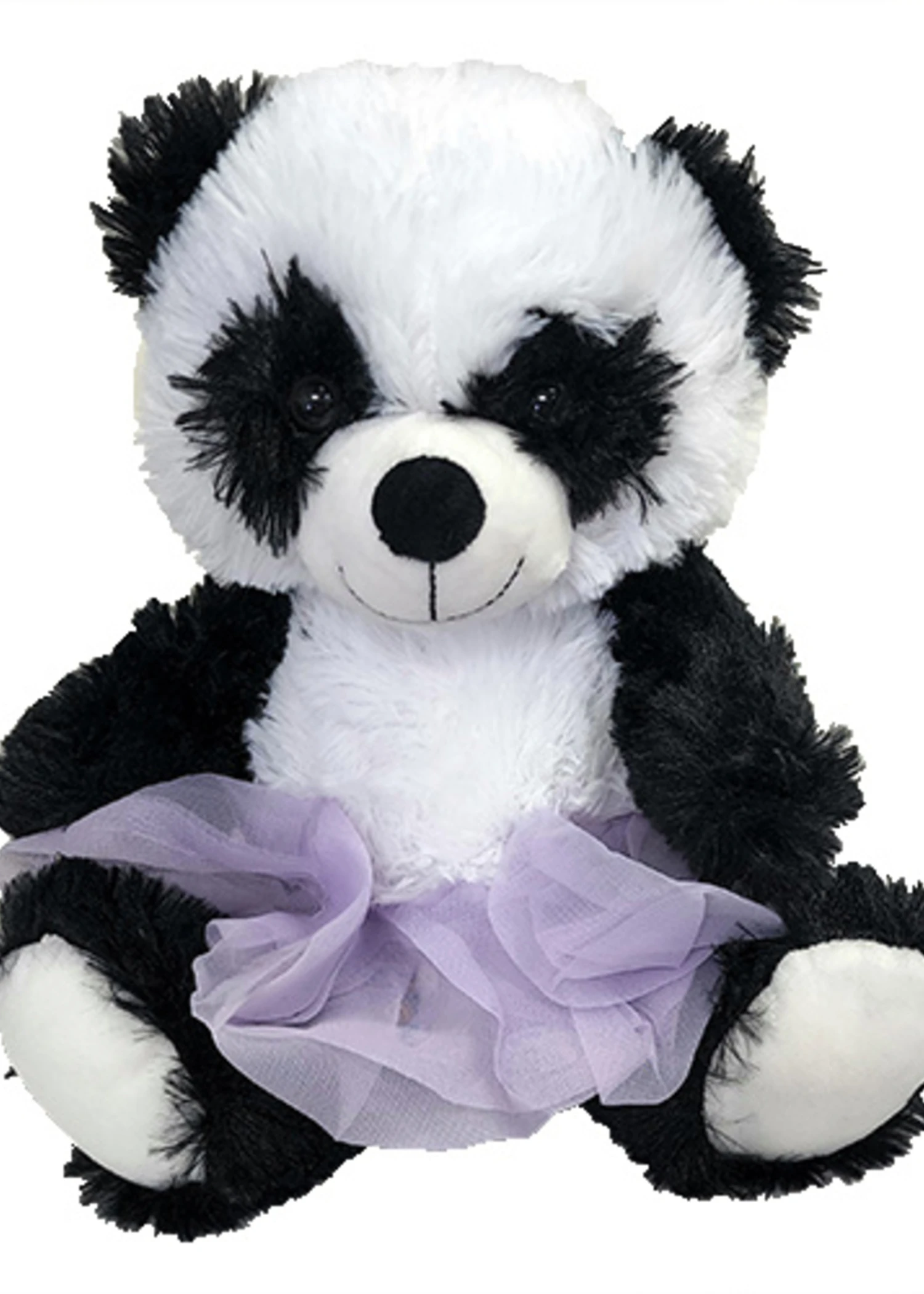 A large and huggably soft black and white panda wearing a tutu. Stuffed with hypoallergenic fiber fill.