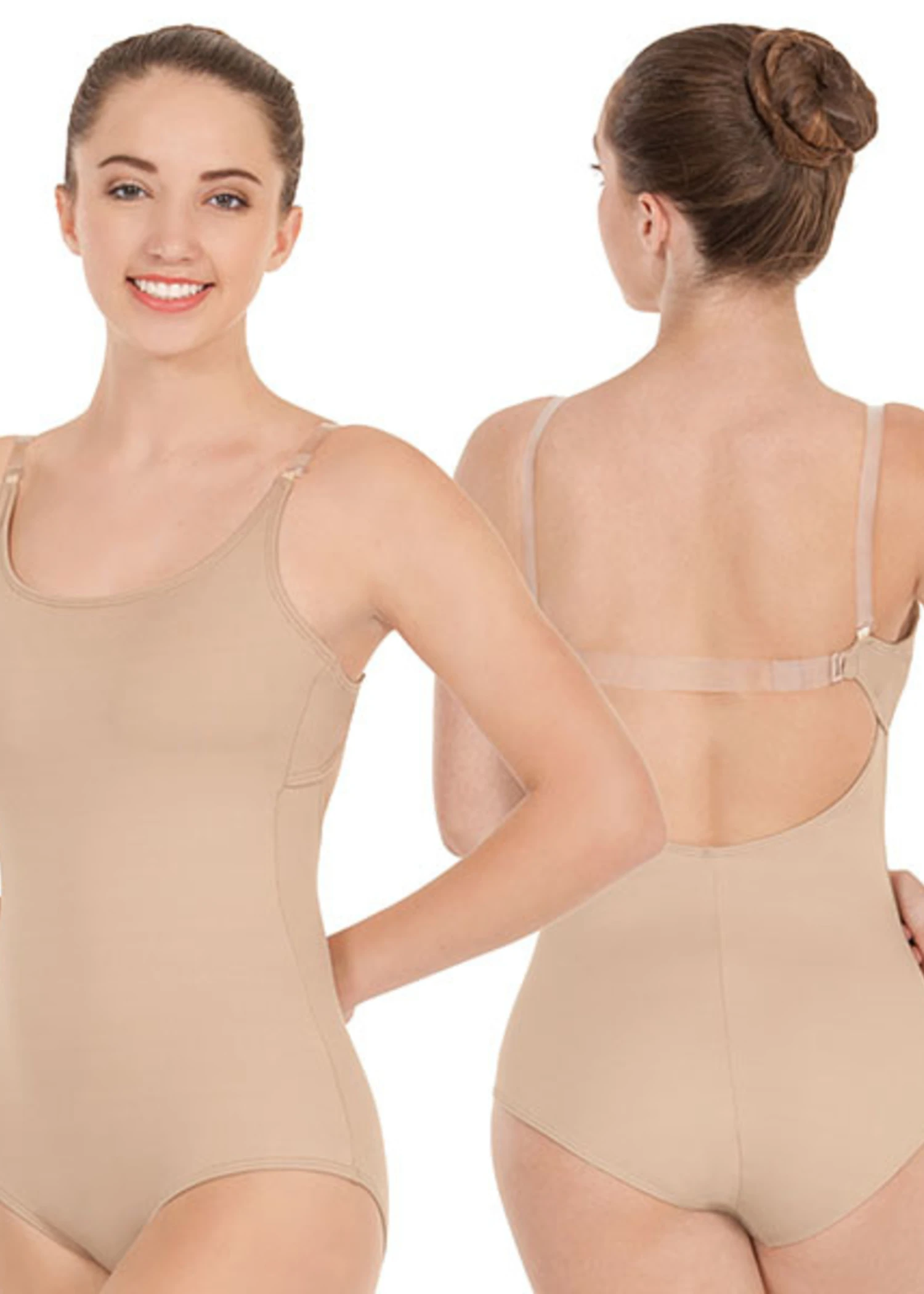 Microfiber liner with padded bra cups. Wide, clear adjustable and detachable backband. Clear shoulder straps are adjustable and interchangable.