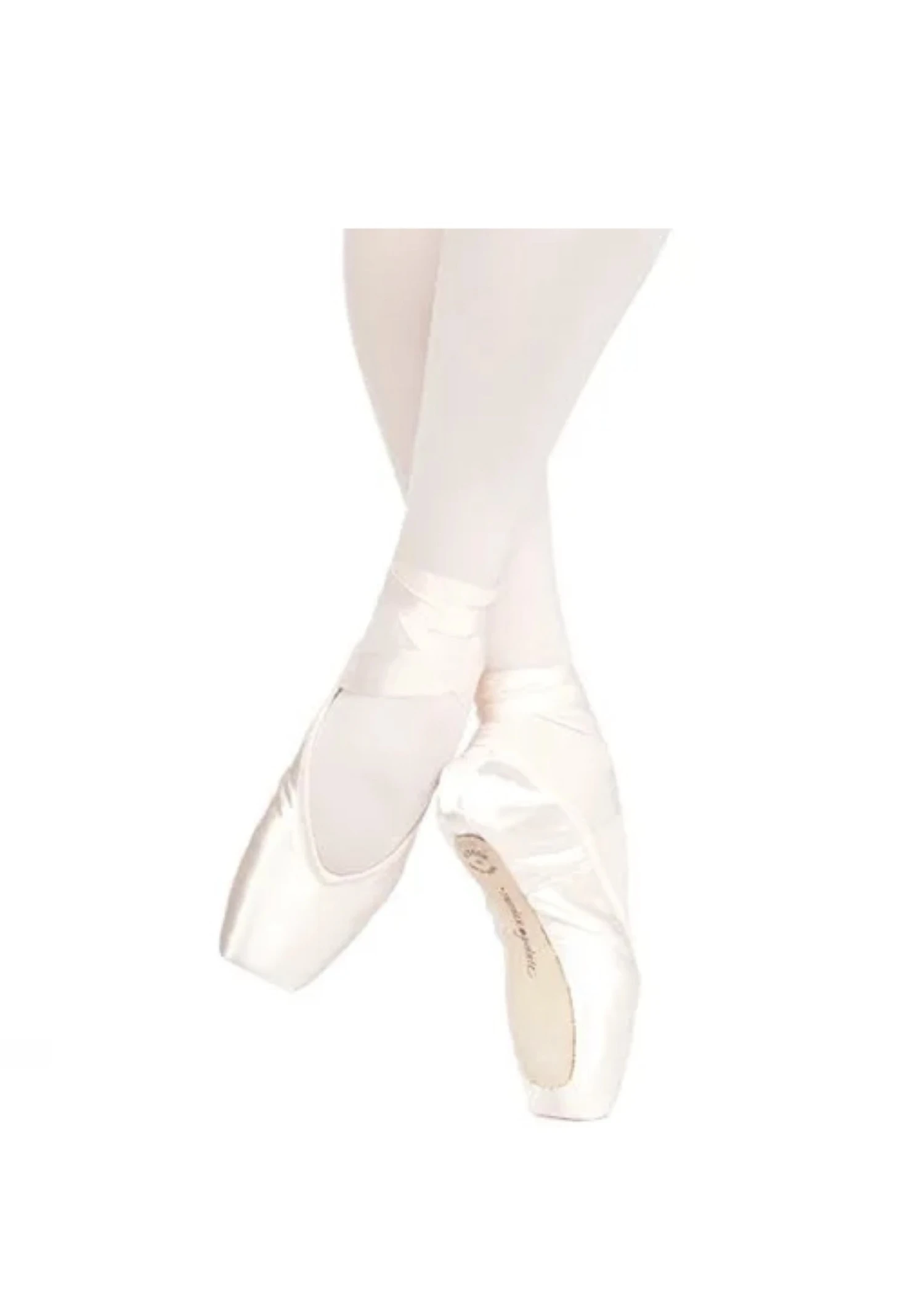 Let Muse be your inspiration for gorgeous pointework and delicious comfort. Russian Pointe’s roomiest pointe shoe, Muse features the pliable shanks, pre-arched construction and exquisite appearance of the Spotlight Collection, with a drawstring, generous box, medium crown and extra-wide toe platform. Dancers most likely to choose Muse U-Cut Pointe Shoes have broad or even-length toes or wear thicker padding, such as gel pads. Muse is optimal for fuller profile feet with even-length toes. Our roomiest shoe!